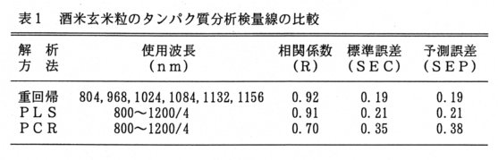 近赤外分光法を利用した酒米玄米粒タンパク質含量の測定