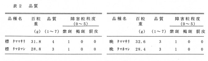 - 県下平坦~中山間地の6月中旬~7月上旬播き栽培に適する。栽培管理は「タマホマレ」と同様でよい。