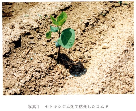- 移植直後に、セトキシジムなどの選択性除草剤を散布してコムギを枯殺する(写真1)。