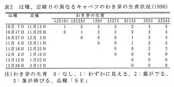 秋まき初夏どりキャベツのわき芽の発生と抑制法