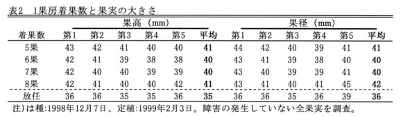 - 収穫日は着果数が1果増すごとに1日程度遅れる傾向にある(表1)。