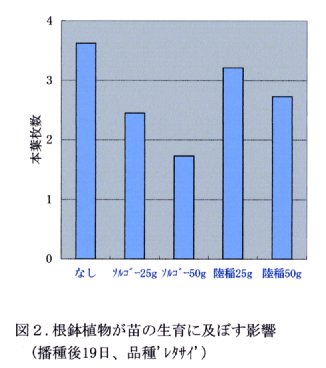 - 根鉢植物の要件としてはア.ハクサイより早く根が伸長し、若苗の間に根鉢を形成できること、イ.ハクサイの生育を阻害しないこと、ウ.移植後、除草剤などで選択的に枯殺できることなどであり、イネ、ソルゴーなどがこの条件に適している。