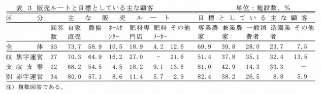 - 堆肥の販売では、主流となっている自家施設での直売や農協販売だけでなく、ホームセンター、肥料専門店等多様な販売ルートを確保している。また、目標としている主な顧客は農家だけでなく、一般消費者、造園業者等多岐にわたっている(表3)。