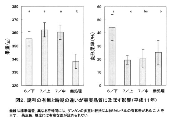 - 収穫果実は、平均果重が8~9%増加し、大玉生産、増収が可能となる(図2)。