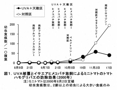近紫外線除去フィルム被覆ハウスにおける天敵放飼によるトマトハモグリバエの防除