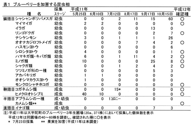 ブルーベリーを加害する昆虫相とシャシャンボツバメスガに対する薬剤の防除効果