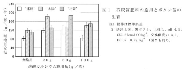 ボタンの苗木生産における石灰質肥料の効果