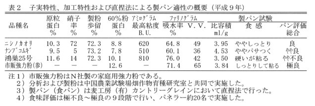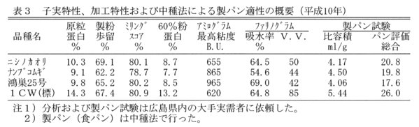 発表論文等:パン用小麦の製パン適性の品種間差、日本作物学会中国支部研究集録、第40号、22-23、1999.