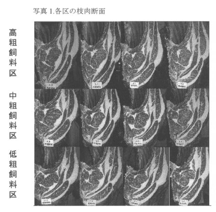 - 低粗飼料区のロース芯は4頭とも変形していた(写真1)。