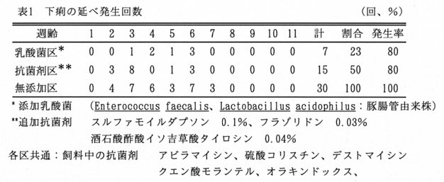 - そこで、非抗菌性物質である乳酸菌製剤を新生子豚に投与することにより、下痢を抑制し抗病性を強化する飼養管理法について検討した。