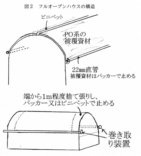 - 強風時は、ハウスバンドを締めて被覆資材が飛ばないようにする。
