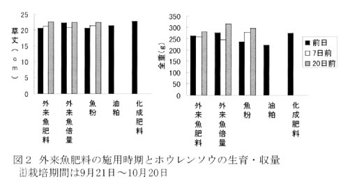捕獲外来魚乾燥粉砕物の野菜栽培用肥料としての利用技術