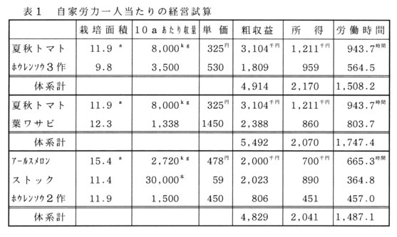 - 夏秋トマトの後作にホウレンソウを3作組み合わせることで10aあたり96万円、葉ワサビの場合は86万円程度の所得増加が期待できる(表1)。