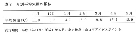 - 12月より気温の低い1月に無加温管理すると、12月に無加温管理する場合に比べて暖房燃料消費量が低減可能である。したがって、12月の1か月程度無加温管理する場合に比べて暖房燃料消費量の削減が可能となる(表2)。
