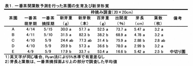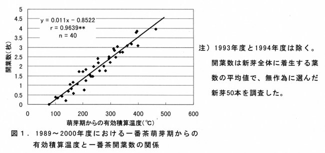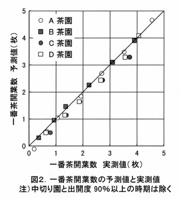 | [成果情報名] | 「やぶきた」における有効積算温度による一番茶開葉数の予測 |