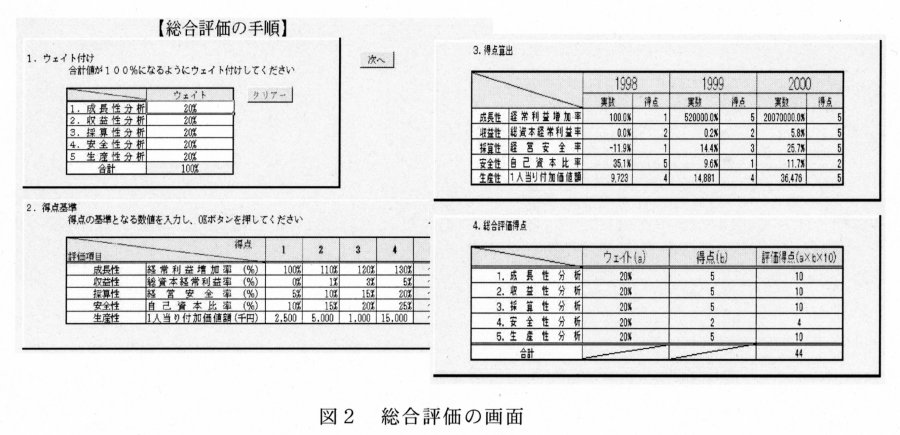 | [要約] | 従来の分析に加えて、「TKC経営指標」(TKC全国会発刊)との比較を可能にした「使いやすい法人経営診断支援システム」を開発した。投資計画や売上予測ができるとともに、経営状態を点数化することで、経営目標に対する到達状況の把握も可能である。 |