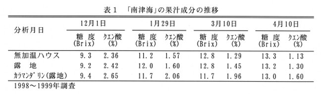 | [成果情報名] | 無加温ハウス栽培による晩生カンキツ「南津海」の生産貯蔵技術 |