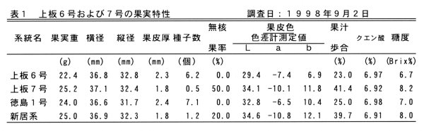 | [成果情報名] | スダチの優良系統「上板6号」および「上板7号」の選抜 |