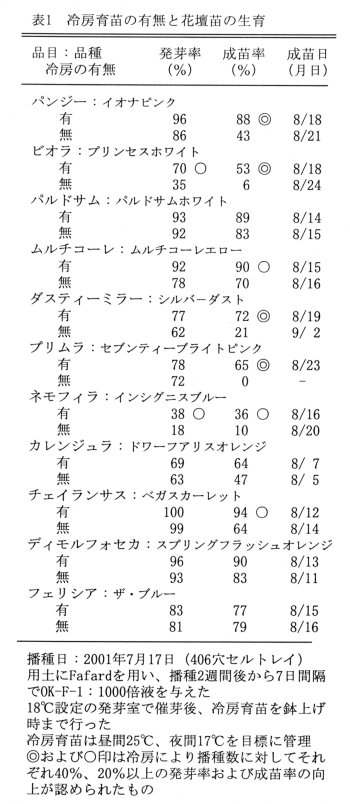 | [成果情報名] | 花壇苗における冷房育苗による発芽率および成苗率の向上 |