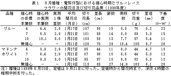 | [キーワード] | ブルーレースフラワー、摘心時期、立茎本数 |