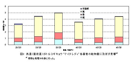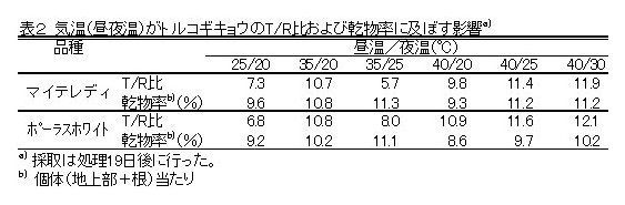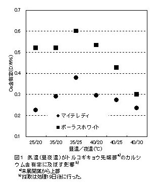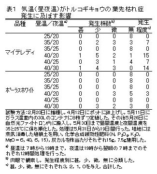 | [成果情報名] | 気温(昼夜温)がトルコギキョウの葉先枯れ症発生に及ぼす影響 |