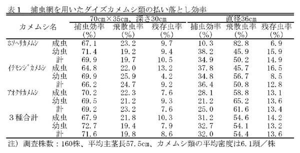 | [成果情報名] | ダイズほ場におけるカメムシ類の生息密度の簡易調査法 |