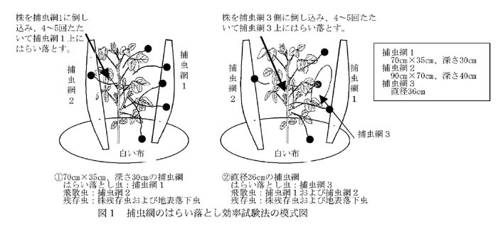 | [要約] | ダイズに寄生するカメムシ類を、株が入る程度の捕虫網(70cm×35cm、深さ30cm)上に払い落とすことによって、生息密度を簡便に調査できる。 |
