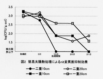 | [成果情報名] | 鶏卵の卵白変性を指標としたトマト根腐萎凋病太陽熱消毒効果の判断 |