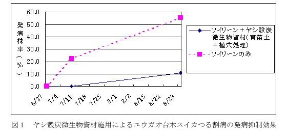 | [成果情報名] | 土壌消毒とヤシ殻炭微生物資材施用の併用によるユウガオ台木スイカつる割病の防除 |