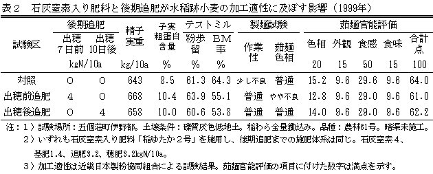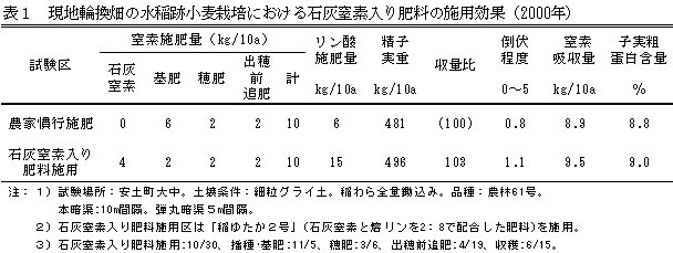 | [成果情報名] | 水稲跡小麦栽培に対する石灰窒素入り肥料の利用法 |