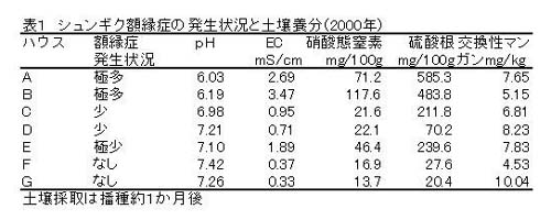 | [キ-ワ-ド] | シュンギク、生理障害、マンガン欠乏 |