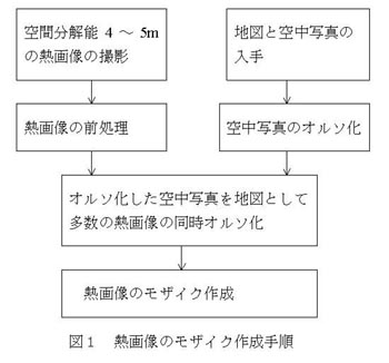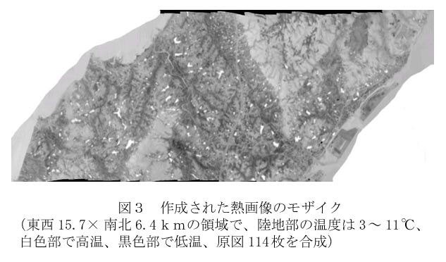 | [要約] | 広域で地上分解能が高く、精度も高い表面温度分布図を作成するために、航空機から熱画像を多数撮影して、ノイズ処理後、オルソ化して、つなぎ合わせ、モザイクを作成する手法を開発した。本法は、検出器の空間分解能が十分でない場合に共通して使える手法である。 |