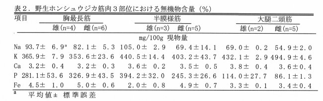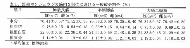| [研究成果情報名] | 野生ホンシュウジカ筋肉における一般成分と色調 |