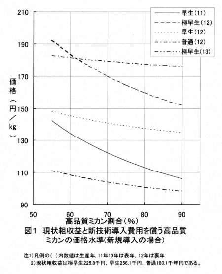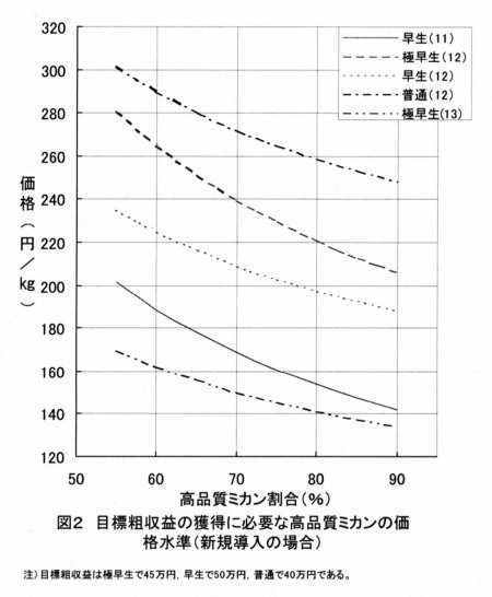 | [成果情報名] | 周年マルチ点滴かん水同時施肥法導入に必要なウンシュウミカンの価格水準 |