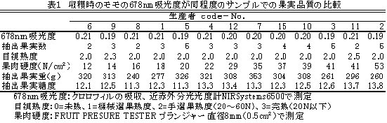 | [成果情報名] | モモ果実の日持性と窒素栄養状態の関係 |