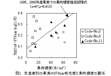| [要約] | 収穫時の果皮色が同程度でも果肉硬度は生産者により差があり、樹体内の窒素栄養が富む状態で栽培された果実ほど果肉の軟化が進行している。収穫時、果肉硬度が低い果実は、その後の軟化も早く、日持性が劣る。 |