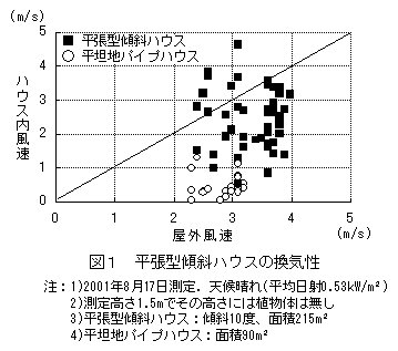 | [成果情報名] | 高軒高の平張型傾斜ハウスにおける快適性および管理作業の軽労化 |
