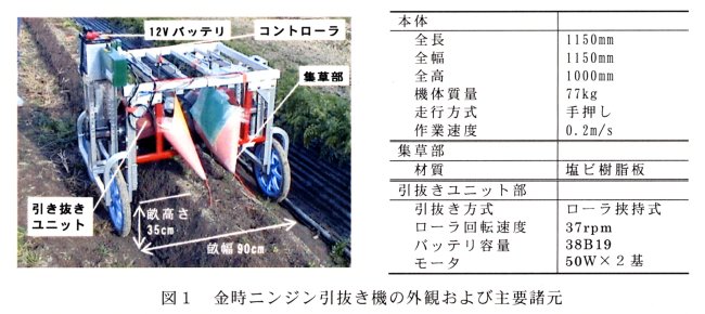 | [成果情報名] | 金時ニンジン引抜き機 |