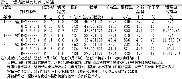 | [キーワード] | 小麦、農林61号、出穂後10日追肥、粗蛋白含有率、出穂前7日追肥 |