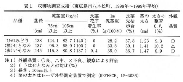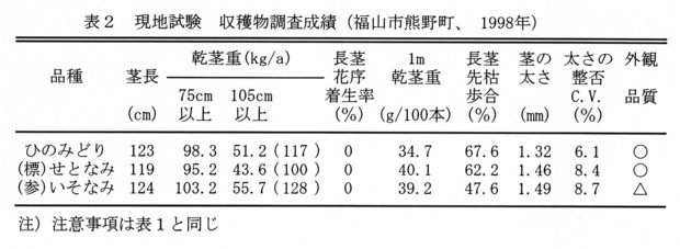 | [キーワード] | ひのみどり、多収、茎の太さ、変色茎、奨励品種 |