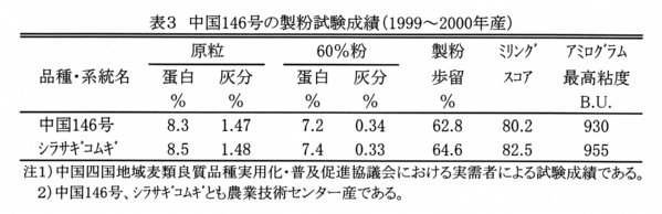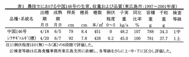 | [成果情報名] | めん用小麦「中国146号」の奨励品種採用 |