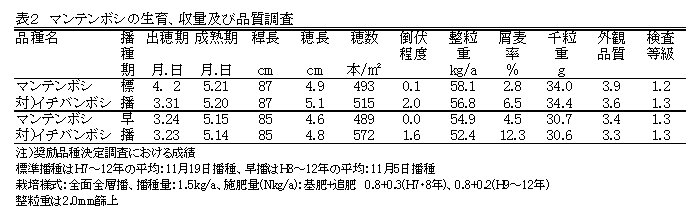 | [キーワード] | 裸麦、マンテンボシ、耐倒伏性、奨励品種 |