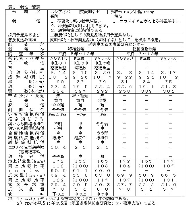 | [成果情報名] | 中生の稲発酵粗飼料向き新品種「ホシアオバ」 |