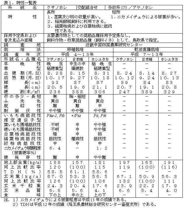 | [成果情報名] | 晩生の稲発酵粗飼料向き新品種「クサノホシ」 |