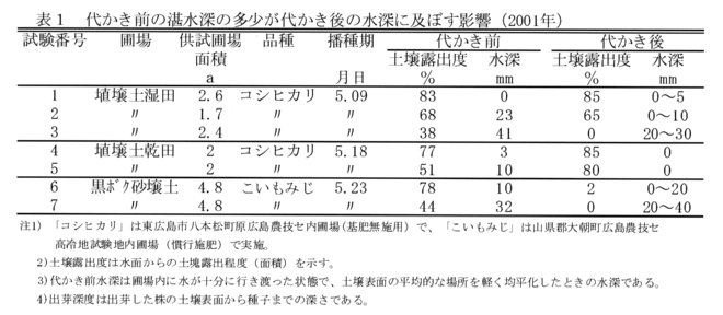 | [成果情報名] | 水稲湛水直播栽培における浅水代かき直後播種技術 |