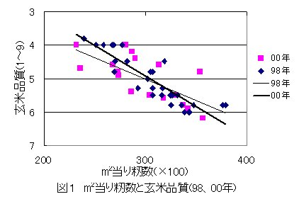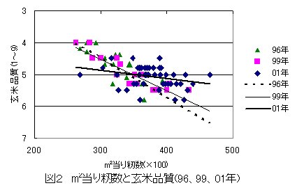| [キ-ワ-ド] | 「コシヒカリ」、m2 当り籾数、玄米品質、m2 当り茎数、色票値 |