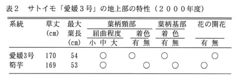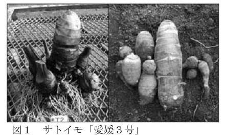 | [成果情報名] | 筍芋と海老芋赤茎との交配によるさといも新系統、サトイモ「愛媛3号」 |