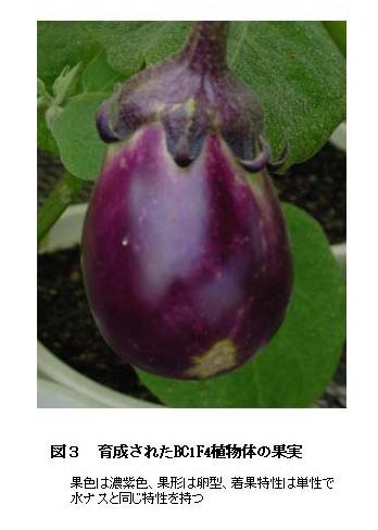 | [成果情報名] | 果実特性選抜とDNA多型検出による青枯病抵抗性水ナスの育成法 |