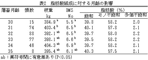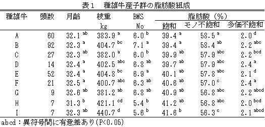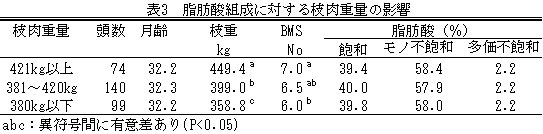 | [成果情報名] | 黒毛和種去勢肥育牛の胸最長筋内脂肪の脂肪酸組成 |