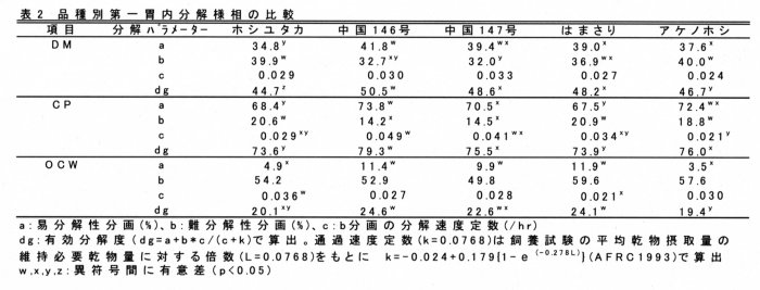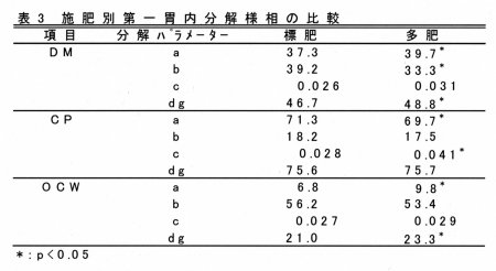 | [成果情報名] | 施肥量の異なる稲発酵粗飼料の第一胃内分解特性 |